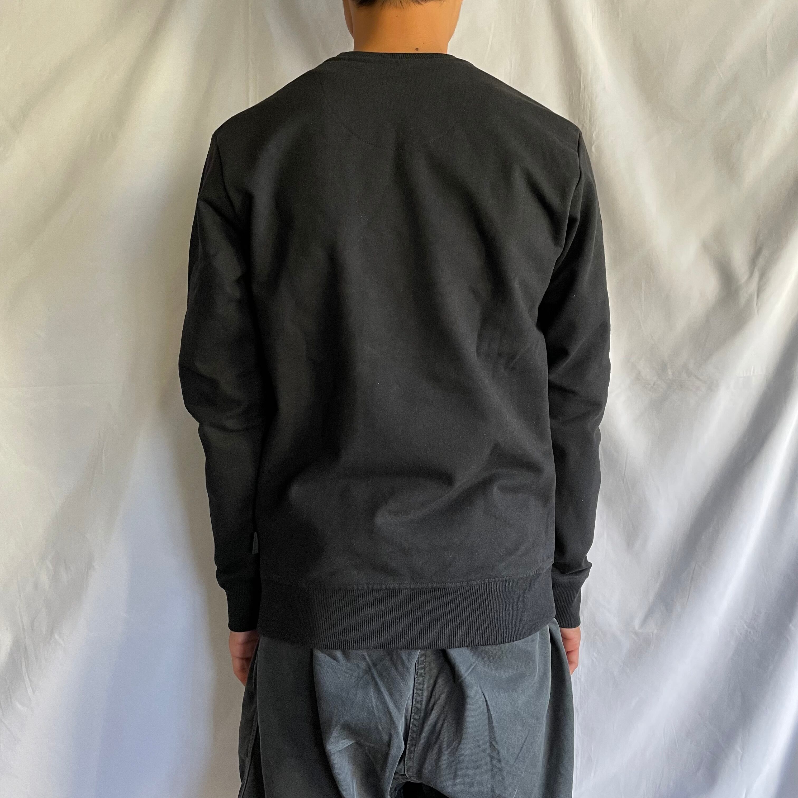 フロント左胸にロゴ織ネームがあしらわれたシンプルなクルースウェット