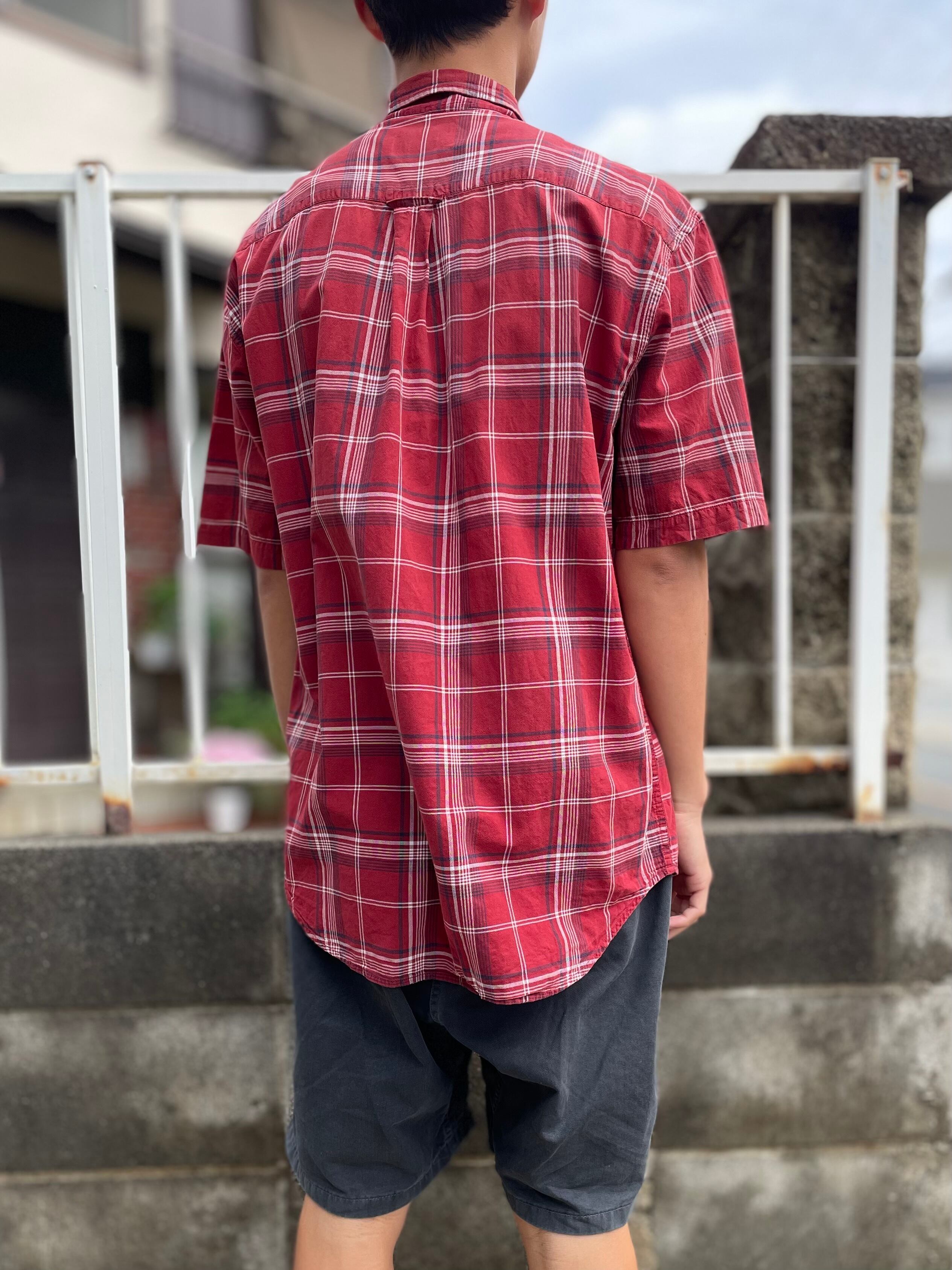 00s~ Eddie Bauer S/S cotton plaid B.D shirt M "INDIA" / エディーバウアー 半袖 コットン チェック ボタンダウン シャツ インド製