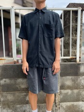 GEORGE S/S linen rayon shirt "BLACK" / 無地 黒 リネン レーヨン 半袖 シャツ